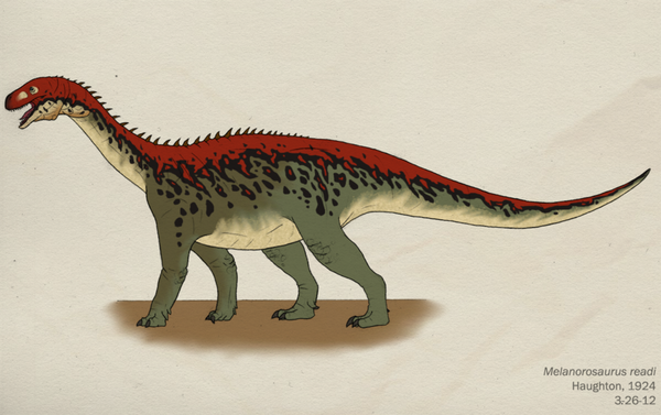Меланорозавр (ящер с чёрной горы) жил на нашей планете 215 млн лет назад. Огромный динозавр, по меркам триасового периода, был очень похож на зауроподов, но не обладал главным их качеством - лёгкими и полыми костями. С систематикой триасового гиганта вообще много проблем. Кто-то относит его к прозауроподам, кто-то к базальным зауроподам, а кто-то его вообще не включает в эти группы. Но меланорозавр был явно близким родственником юрских колоссов.