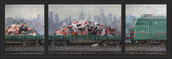 На триптихе изображены представители исполнительной, судебной и законодательной власти.