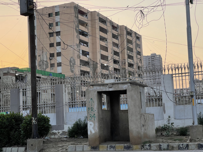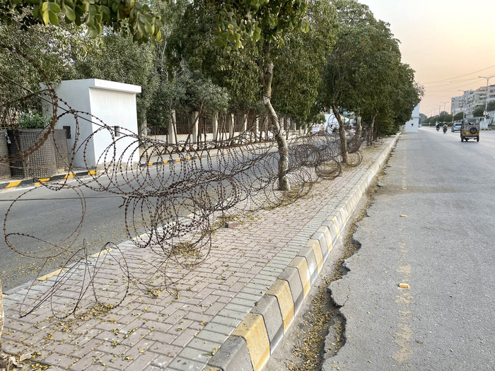 А вот так, кстати, выглядит вход в школу в хорошем районе Карачи