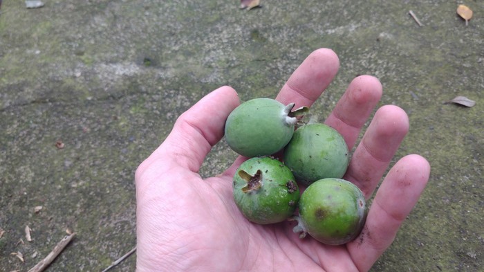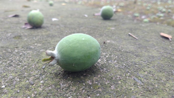 Фейхоа тоже не рвут. Плоды снимают банальной тряской дерева. Спелые значит падают