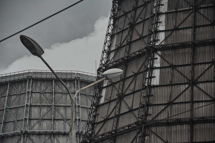 Издалека это всё напоминает нечто из фильмов про антиутопическое будущее. Огни, дым, пар, огонь и прочие ништяки.