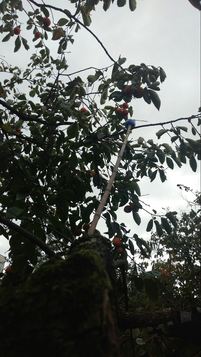 Вот таким макаром рвется. Деревья почти все тонкие и не предполагают срывание фруктов непосредственно с самого дерева.