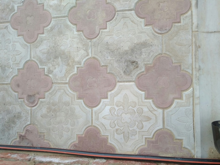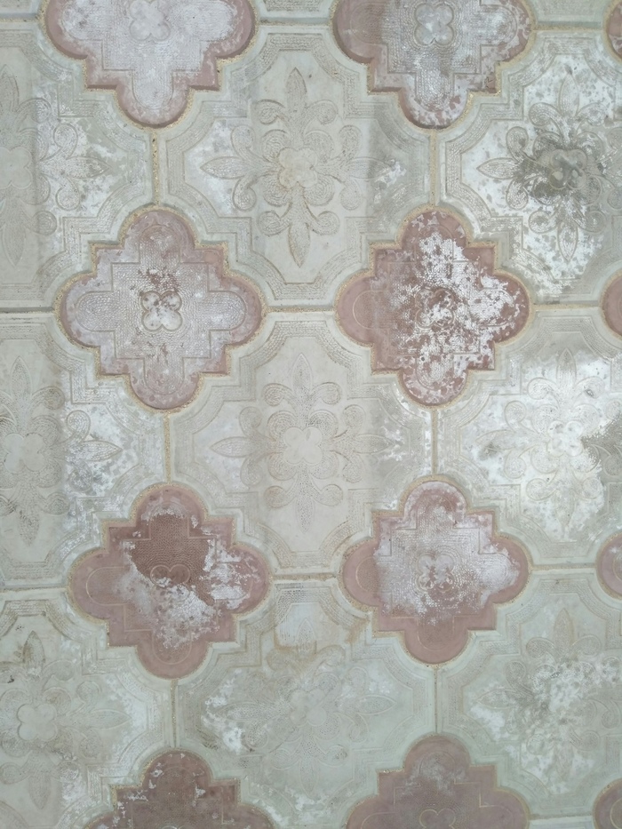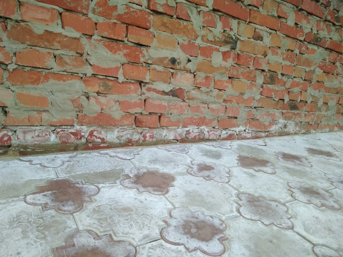 справа, вообще непонятными клоками. Плитка потемнела вся и на вид выглядит, как будто ей лет 5 - 7, хотя в реальности чуть больше месяца. Самое неприятное, что на углах и примыканиях начала откалываться и покрылась какой-то рыжиной. И даже она выглядит странно. Лежит одна плитка чистенькая, а вокруг нее с пятнами.