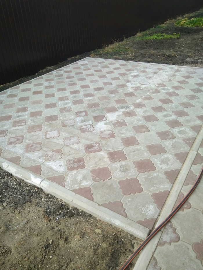 В августе месяце заказал тротуарную плитку для отмостки дома и машиноместа. Выбрал фигурную серую с коричневыми вставками гжель и клевер. Ииииии понеслась.