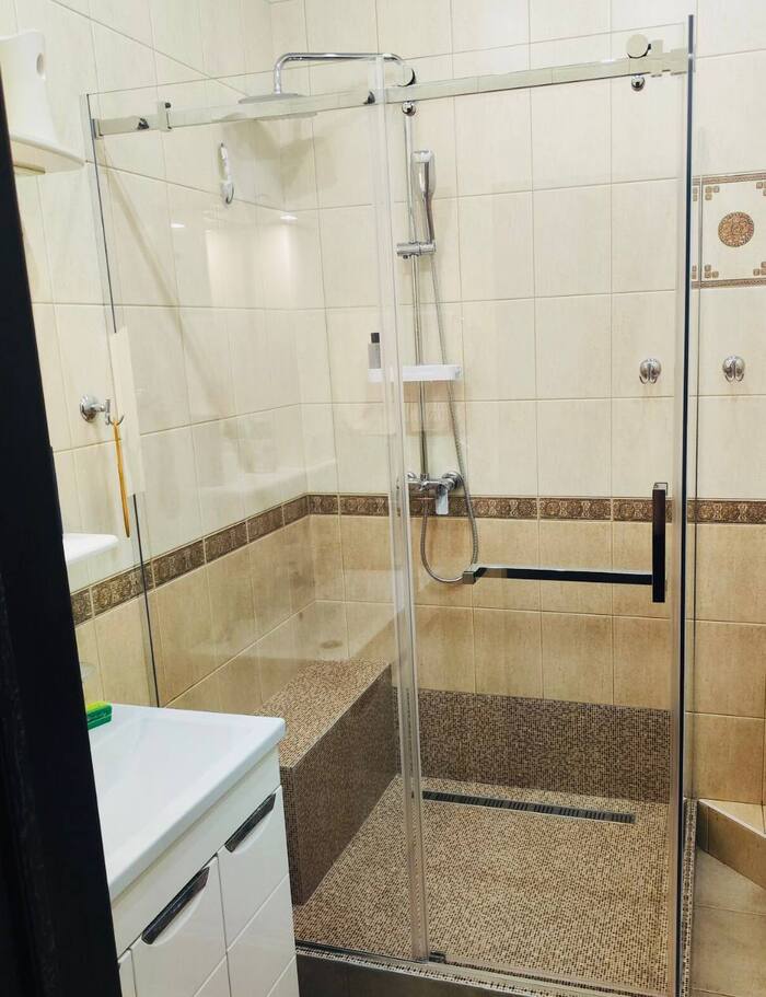 Нет душевых кабин, пластиковых поддонов, стеклянных дверей, силиконовых швов, которые через год чернеют от плесени
