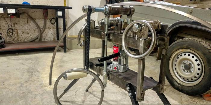 Пришла мысль сплющить 1/4. Тогда, по идее, все должно было заработать. Но ровно сплющить стальную пружину - та еще задача. Решил попробовать еще 1 вариант - рычажный трубогиб.