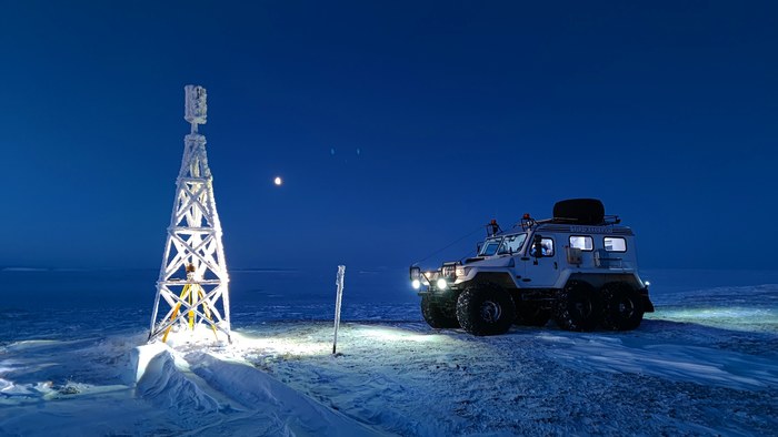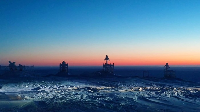 Ездили сегодня по знакам. Приезжаем на знак ГГС. Тундра заснеженная вокруг, реки и озера замёрзшие... Никаких признаков жилья в радиусе 10 км. На бугре среди тундры стоит знак, а рядом - кладбище. Старое такое, кресты, оградки... И тишина. И никаких признаков жилья.