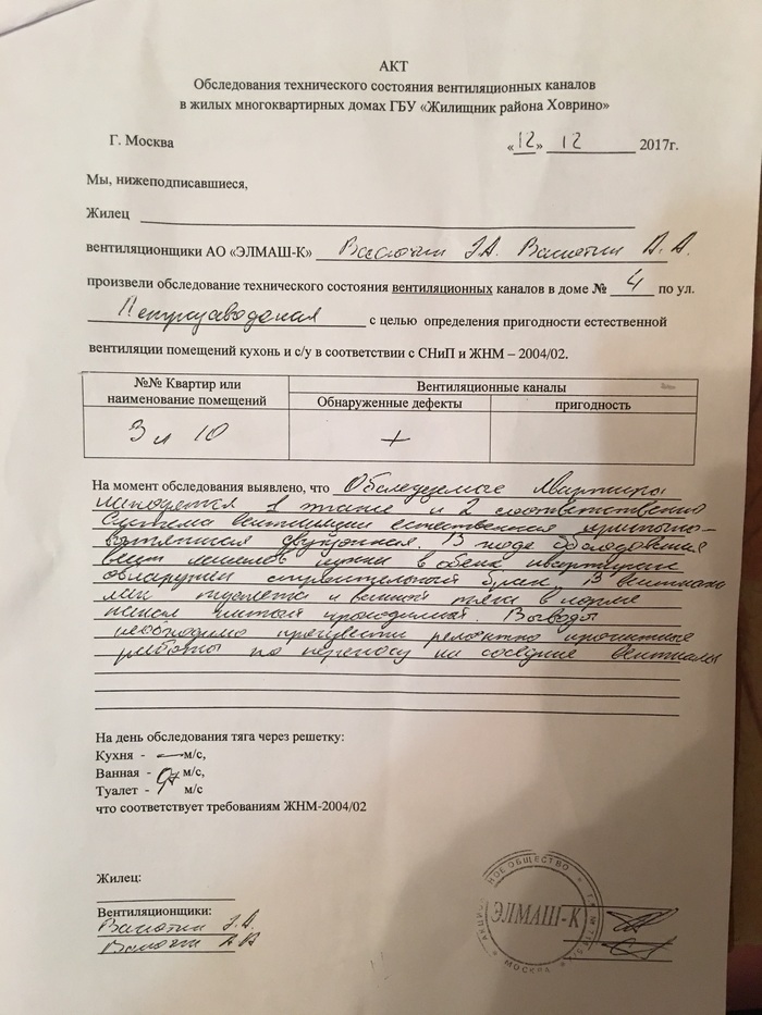После написания письма в УК был получен ответ, что вент канал закупорен и это, внимание, является строительным дефектом! Фото ответа прилагаю