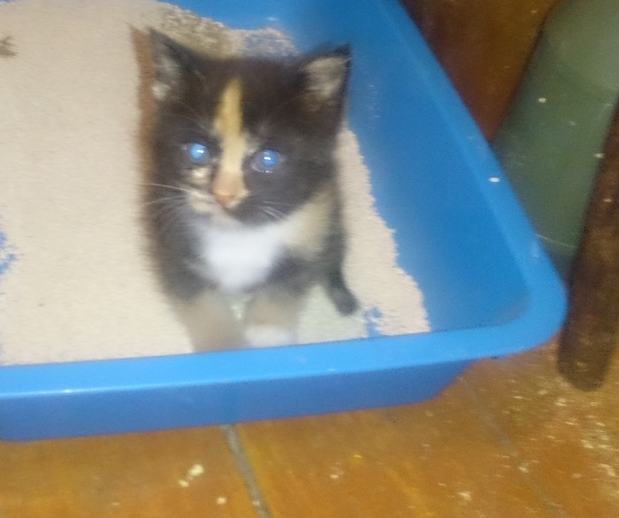 За туалет мы особенно переживали, что она начнёт присаживаться по углам, нужно будет ловить. Вышло все не так. После первого прикорма, когда ей было около месяца мелкая забеспокоилась, побежала к лотку, перевалилась через борт, устроилась, посидела и гордо закопала содеянное. С тех пор ходила только на лоток и больше никуда, если лоток грязный, по её мнению, бежала к нему, затем бежала с мявом к нам, чтобы привели место в порядок.