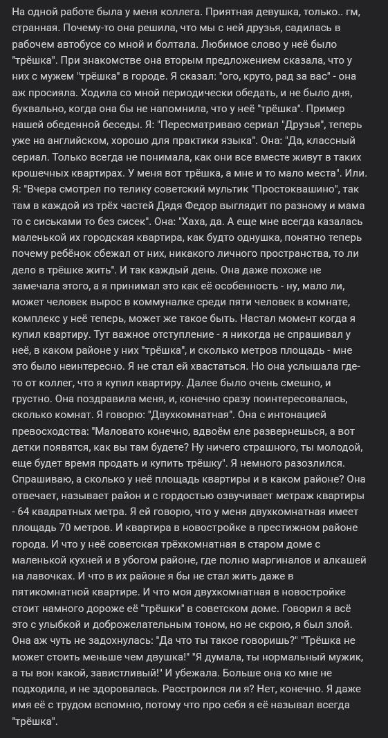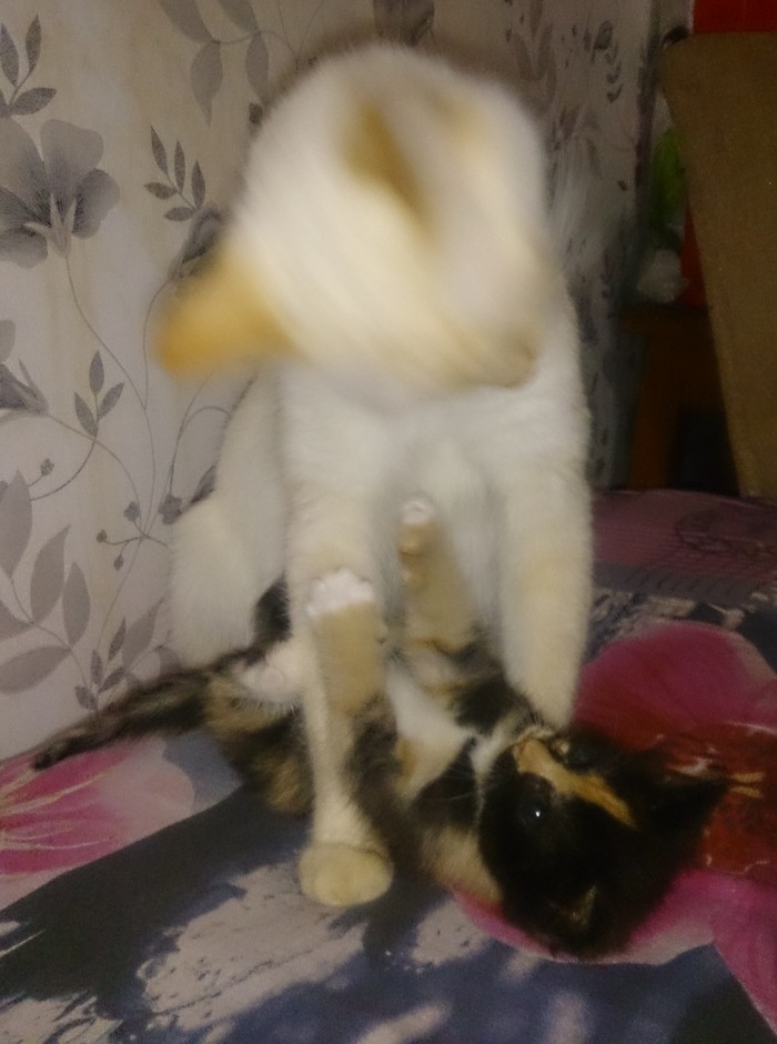 Трёшка очень своеобразная, с характером, своими повадками, любимыми позами. А мы переехали поближе к центру города и шутим, что у нас есть "Трёшка в центре". О, ещё фишка Трёши - она приносит игрушечную мышку на диван. Причём иногда принесёт сама и начинаешь ей кидать: она бежит, таскает её обратно и ждёт похвалы. Хочу сделать выборку с её выкрутасами, нужно еще покопаться в архиве.