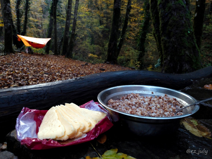 По прогнозу дожди всю неделю, но когда это меня останавливало? Сменила чемодан на рюкзак и бегом на вокзал. А в 4 утра меня разбудил водитель и высадил в Туапсе под проливным дождём. Так начался этот мокрый, холодный, грязный, но красивый поход. Я отмахала 4 км по тёмным улицам и, когда уже светало, добралась до речки с чудесным названием Паук.