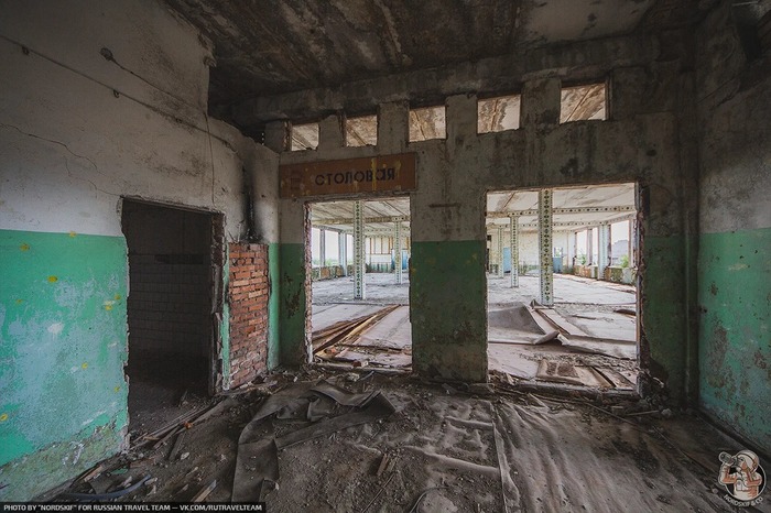 Сейчас тут руины. И самым красивым помещением сохранившимся на заброшенном заводе по сегодняшний день стала столовая.