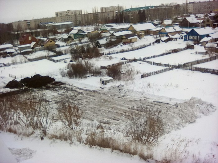 Оставшуюся землю после котлована грузят на самосвалы и перевозят за 100 метров и вываливают в частном секторе ЦЕНТР города