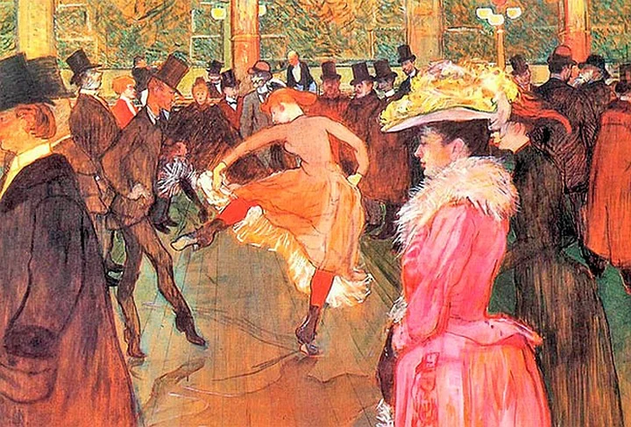 Будучи на короткой ноге с владельцем кабаре «Мулен-Руж», Тулуз-Лотрек уговорил его, что сделает заведению такую наружную рекламу — закачаешься. «Мулен-Руж» был тогда на грани разорения, так что выбора особо не было, владелец согласился.