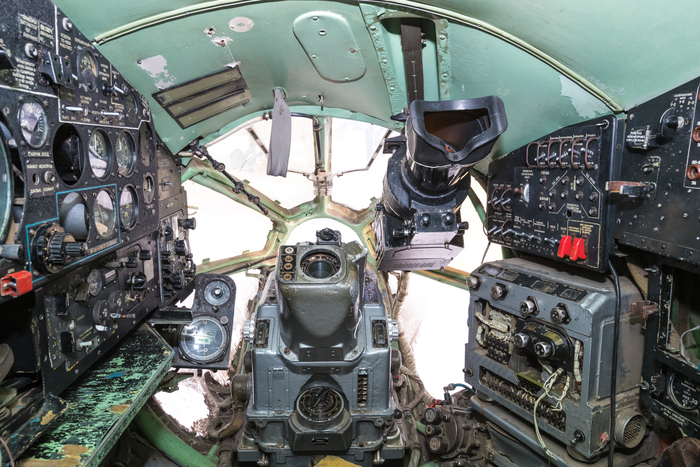 Управление самолета было прямым, жестким. Туполев в те годы ничего и слышать не хотел о бустерах – механизмах, облегчающих управление. В него входил автопилот АП-6Е, закрылки и посадочный щиток выпускались электромеханическим способом, интерцепторы – гидравликой.