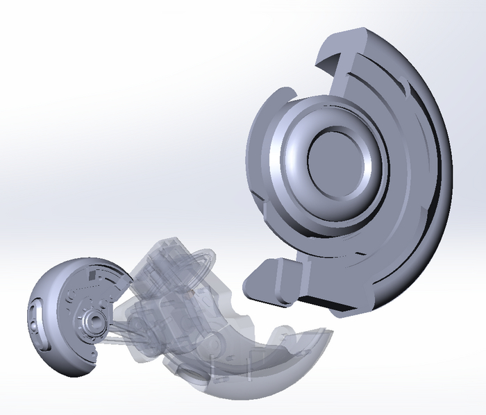 И все таки к охранной турели я привык, и освободившееся место было решено заполнить тем же, что там и стояло. Приступил к изготовлению новой единицы. Начал с моделирования, а если точнее, с намерения устранить ряд недочетов прототипа. Был улучшен процесс сборки корпуса (добавлен винт) и доработана фиксация боковых спонсонов с пушками (добавлены упругие защелки, которые не только надежно фиксируют детали, но и облегчают переоснащение игрушки).