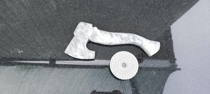 Тем временем Сергей приобрел себе вставку для ножей из бивня мамонта. Он давно хотел это сделать и сегодня решился. Небольшие куски этого материала будут украшать рукояти разных ножей, которые в будущем он сделает.