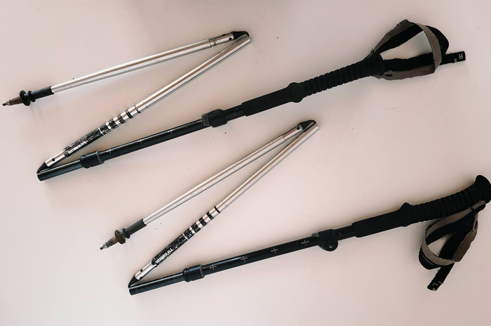 Под все эти параметры хорошо подходили палки Black Diamond Distance Z 120cm. Лёгкий прочный сплав 7075, Z-образное складывание, компактные размеры - идеально. Взял я их на Авито за 8тр 6 лет назад. Больше палки не менял. Бесчисленное количество раз они спасали меня от падений, цепко держали дно бурных горных рек, надёжно впивались в самые сыпучие склоны, даже поролоновые ручки не поддались грузинской саранче, а иногда приходилось отдавать участникам взамен их сломанных палок до конца похода. Всё им нипочём, только сбитая краска напоминает о пройденном пути.