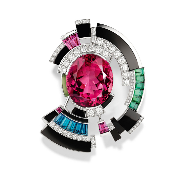 Международные дизайнеры и ювелирные дома все чаще используют рубеллит в качестве центрального камня - хотя для итальянской ювелирной компании Verdura использование разноцветных камней, подобных этому, не является чем-то новым. Основатель компании, герцог Фулько ди Вердура, был пионером в области демонстрации и смешивания ярких оттенков.