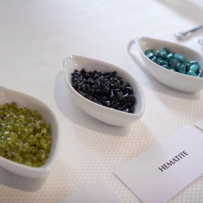Генеральный директор и основательница Gemology Кристель Ланнуа, которая начала свою карьеру в Clarins Group, объясняет суть Gemology более подробно. Она рассказывает, что камень состоит из микроэлементов, таких как железо, селен, медь и цинк, а также микроминералов, включая серу, натрий и магний.