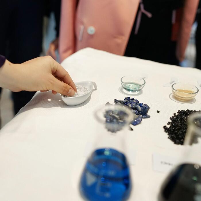 "У нас те же поставщики, что и у ювелиров", - объясняет она. "В нашем случае не имеет значения, есть ли в камнях включения, поскольку количество микроэлементов и минералов одинаково, независимо от качества камня. За исключением алмазов, все камни моются, дробятся и превращаются в тальк или порошок в нашей лаборатории в Лиможе. У нас пока нет необходимого оборудования для обработки алмазов, поэтому мы получаем их непосредственно из лаборатории в Антверпене в готовом виде. Имея под рукой все ингредиенты, мы производим нашу продукцию на двух наших французских предприятиях, следуя рецептам, разработанным нашей командой исследователей и разработчиков, которая продолжает постоянно исследовать новые камни".
