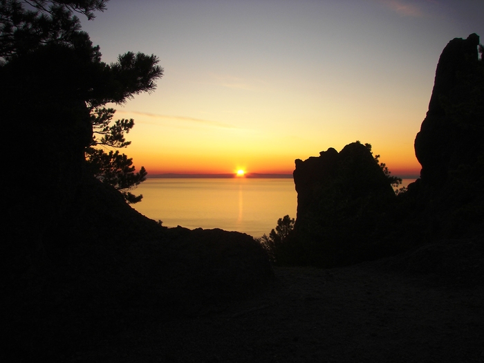 Дошли до бухты Песчанной. Любимое место на Байкале. Еще не начался восход,мы пошли на верх,в перевал,чтобы оттуда увидеть восход солнца.