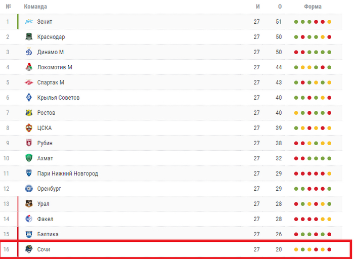Таблица РПЛ после 17 туров. Есть повод для оптимизма у болельщиков Спартака)