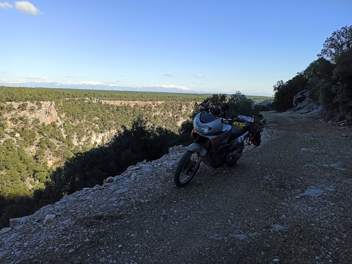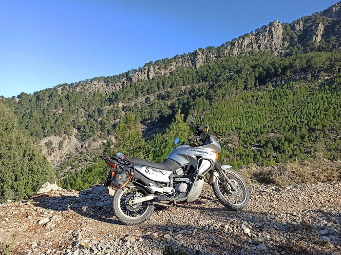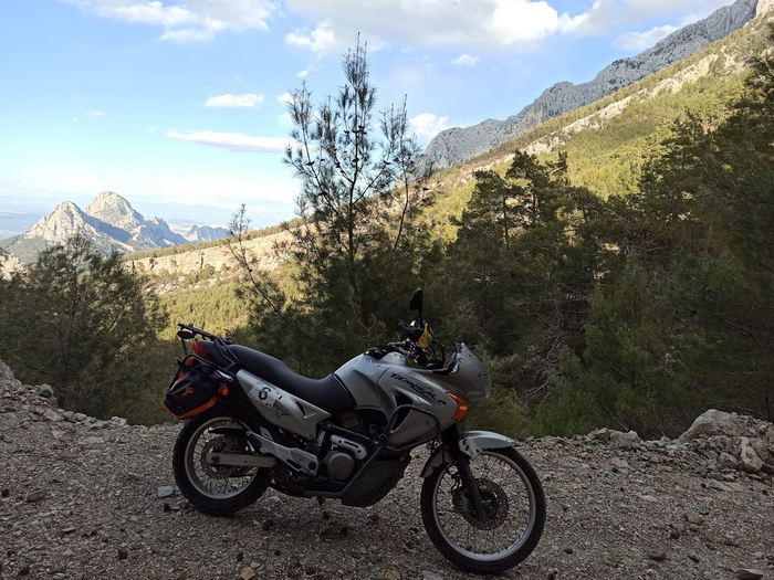 Не думайте, что внедорожная трасса ограничивается холмиками, там сильно больше интересного. Вот, например, холмик побольше. Штурмует его, кстати, настоящая Africa Twin.