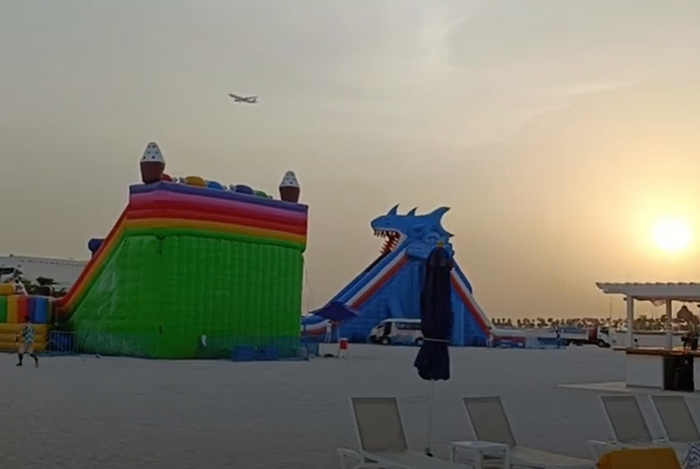 Корпуса и основная инфраструктура находятся через дорогу от моря. На пляж нужно идти минут 5 вдоль отеля Delphin Palace, в дневное время курсирует шаттл, который за 1,5 минуты доставит вас до пляжа. Для детей на пляже есть игровая зона с тентом от солнца, рядом раздевалка и душ, кафе с баром, десертами, напитками, фаст-фудом, фруктами.