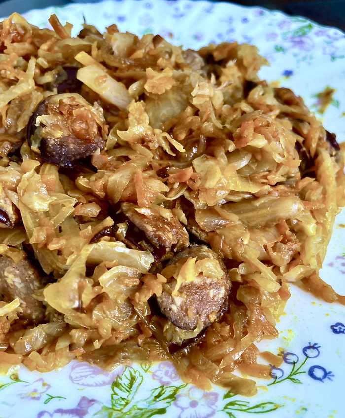 Решил я попробовать приготовить то, что сейчас модно называть «бигос». Но, по-моему, это все-таки тушёная капуста с копчёнными колбасками.