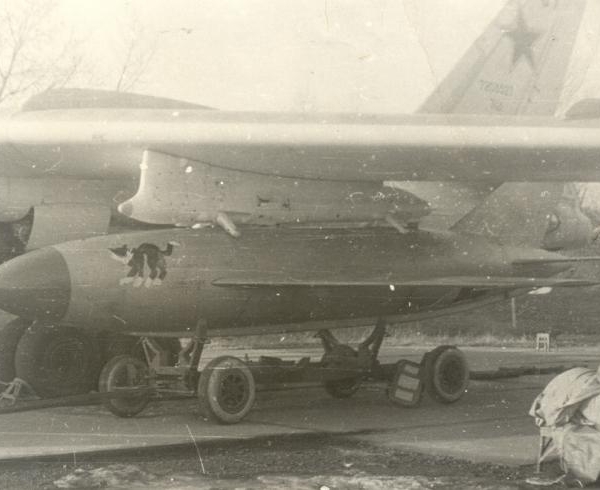 К фото - Экипаж Ту-16П гв. кз. "быховского" полка (слева направо: Баркевич А.П., капитан, командир корабля; Казанов А., лейтенант, пом. командира корабля; Трубников В.П., ст. лейтенант, штурман корабля; Чибиков В.А., лейтенант, второй штурман; Финашкин И., старшина, командир боевых установок) - 3 фото из личного архива В.А. Чибикова.