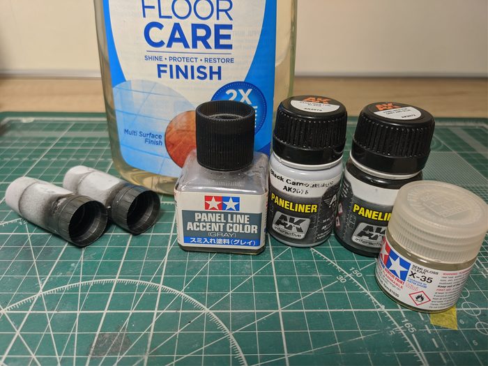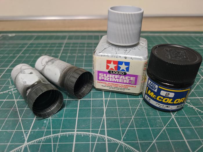 В случае работы со смолой, грунт обязателен. А иначе будете перекрашивать, как это делал я. В первый раз решил, что будет достаточно только черной глянцевой краски, без грунта. Лично я доверяю только сольвентным акрилам, как та же тамия, что на фото выше. Никаких грунтов на водной основе. Это лично моя неприязнь и если после ваших проб будет хорошо, буду только рад за вас) А слезло всё из-за скочта, которым пользовался, чтобы покрасить внутренние панели. На фото они тоже видны