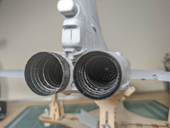 Ставим на место и наслаждаемся результатом. Да, не покрасил еще одну смоляную деталь, которая стыкуется уже к самому самолету, но покраска оного будет уже намного позже. Всем спасибо за нимание!