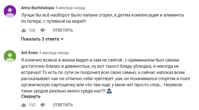 Он добавил, что его мать пошла в "Зимнюю вишню" с внуками, которые были на каникулах, чтобы посмотреть мультфильм. По его словам, сын вместе с еще двумя десятками зрителей смог выйти из кинозала после начала пожара. Их тела нашли не в зале, а возле эвакуационного выхода.