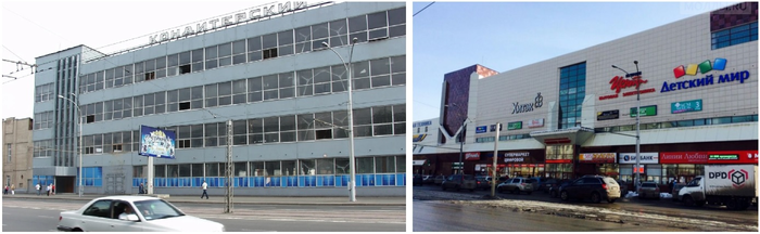 Здание Кемеровского кондитерского комбината до и после перестройки