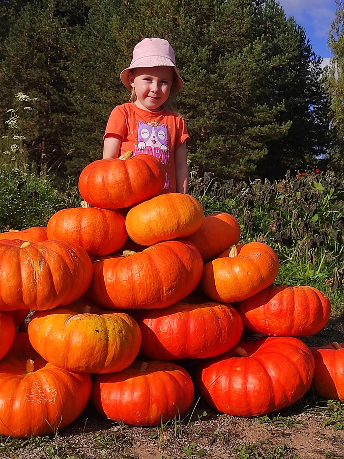 Сорт называется Россиянка. Очень нравится этот сорт. Яркий, вкусный. Хранится почти до июня следующего года. Форма плоская, удобная для транспортировки. На одном кусту было в среднем 7 тыкв. Рекомендую к выращиванию. Семена хорошо вызревают и можно снова их сеять весной. Мы выращиваем через рассаду.