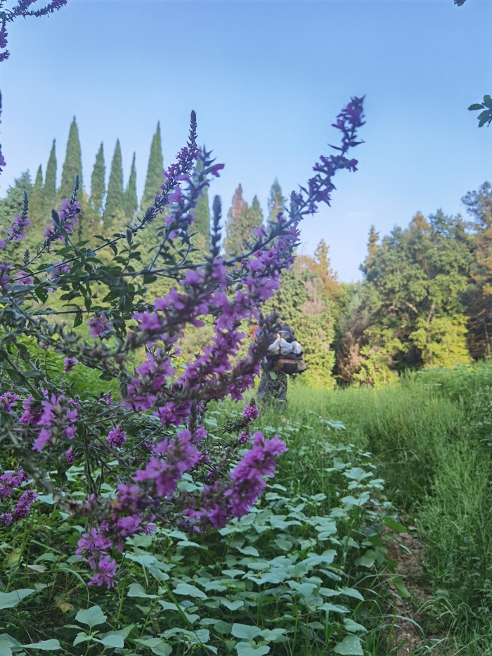 Проснувшись, увидела кучу микромуравьев на палатке и рюкзаке в тамбуре. Надеюсь, что внутри не увижу никого. Мотылек, комары, даже богомол. Всем нужно было залезть на палатку. Лежала, слушала птиц, а одна всё шумно летала недалеко от палатки. Внезапно пришло осознание, что это звуки собачьего носа, а не быстрых птичьих взмахов крыльями. Начала говорить, она ушла.