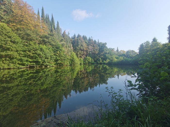 Наконец, вышли к Райскому озеру. Водная гладь лишь изредка тревожилась живущими в нем рыбами. Очень спокойное место.