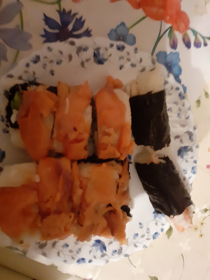 Е) я опять таки жопа, ибо это говно есть не мог даже после соуса. Нет, дело было не в нори, а в Рыбе и Рисе.