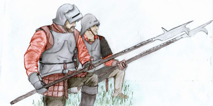 Кроме того, в течение нескольких недель, предшествовавших вторжению, некоторая часть шотландского войска прошла краткий курс подготовки под руководством французских инструкторов графа д’Осси, специально присланных для этого Людовиком XII. От французов же шотландские пехотинцы получили пики длиной около пяти метров, имевшие широкое распространение на континенте. Они не только превосходили традиционные копья шотландцев в длине, но и обладали более толстыми и прочными древками.