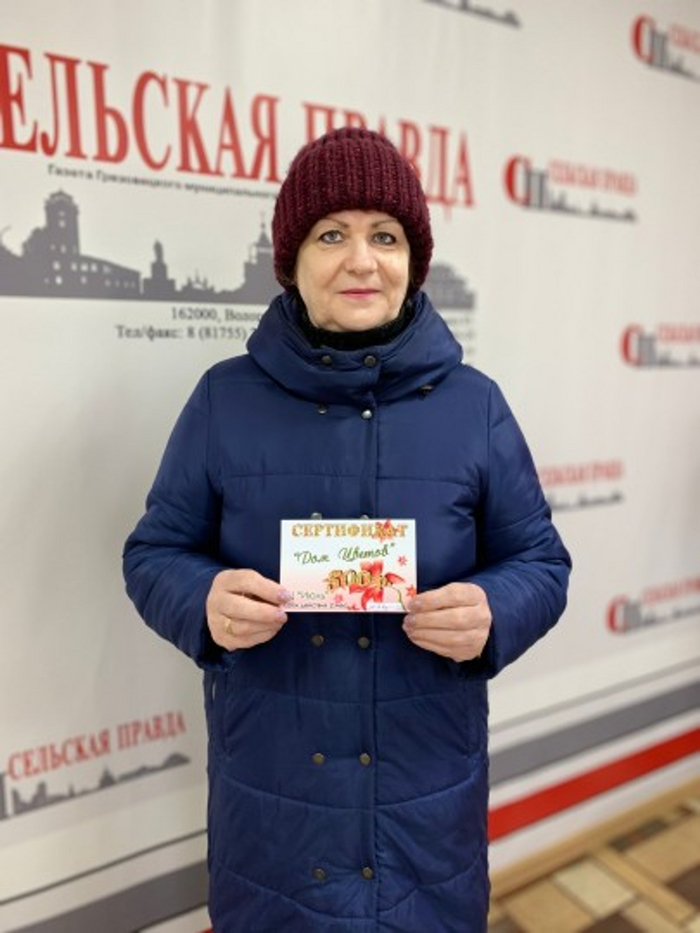 В Вохтоге (это Вологодская область) Татьяна Вячеславовна подписалась на местную газету и выиграла сертификат в цветочный магазин. Победителей выбирают несколько раз в месяц, среди подарков — банные наборы, термосы и другие полезные штуки.