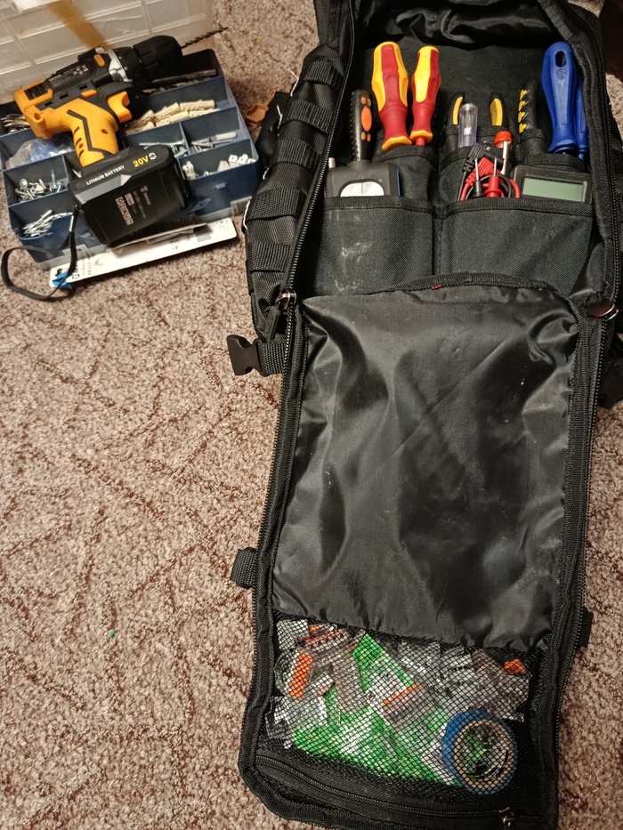 У нас было два пакета травы пустых ведëрка из под капусты и имбиря, моток атласной тесьмы, картон, клей обычный, клеевой пистолет и я ещё притащил свой рабочий рюкзак, а то мало ли.
