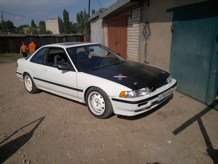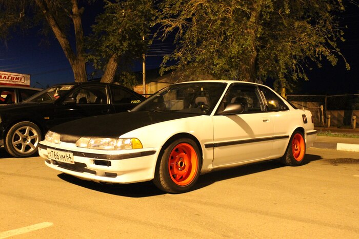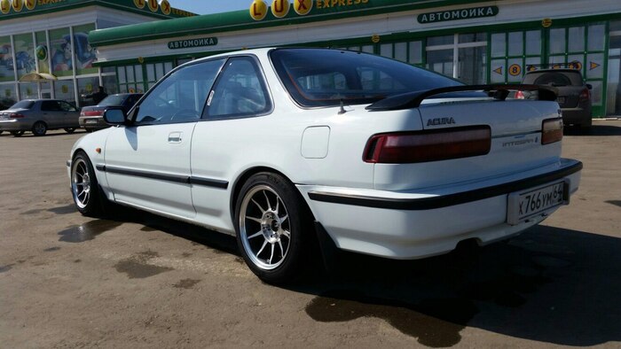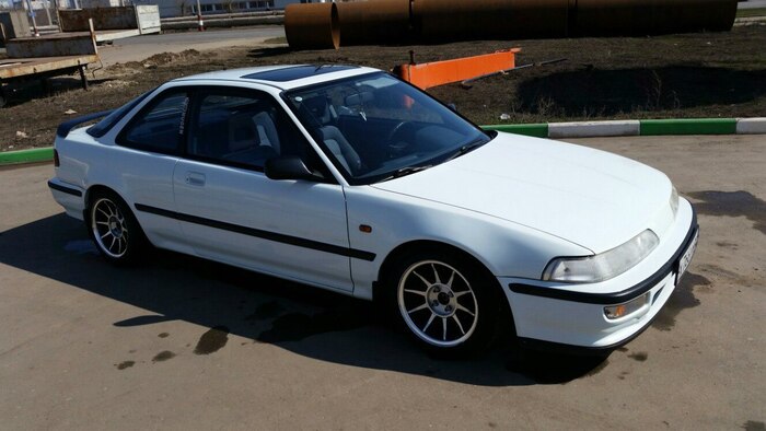 Итак, возможно единственная в России, Acura Integra DA9 1990 года выпуска. С завода она оснащалась двигателем B18A1 мощностью 129л.с. без знаменитой системы VTEC и 4х ступенчатой акпп. Несмотря на маленькую мощность и автомат, машина ехала свои 8.5-9 секунд до 100.