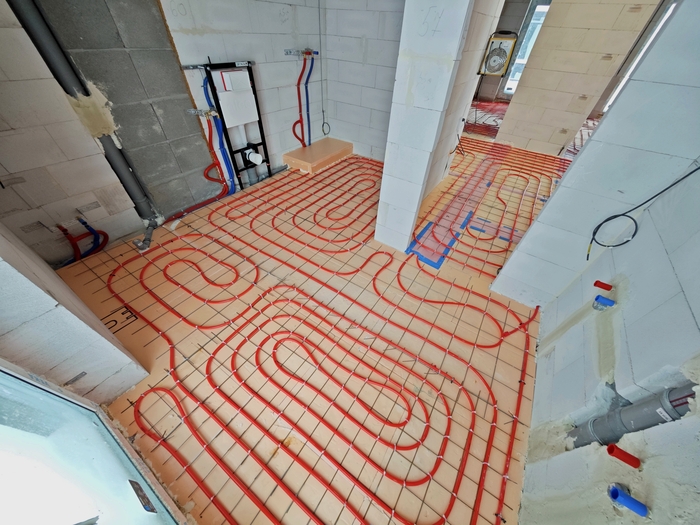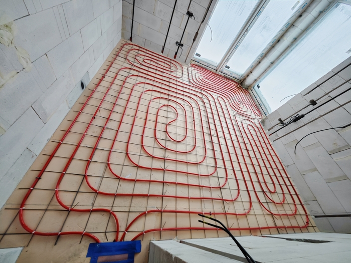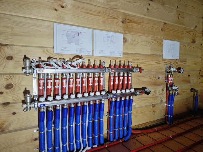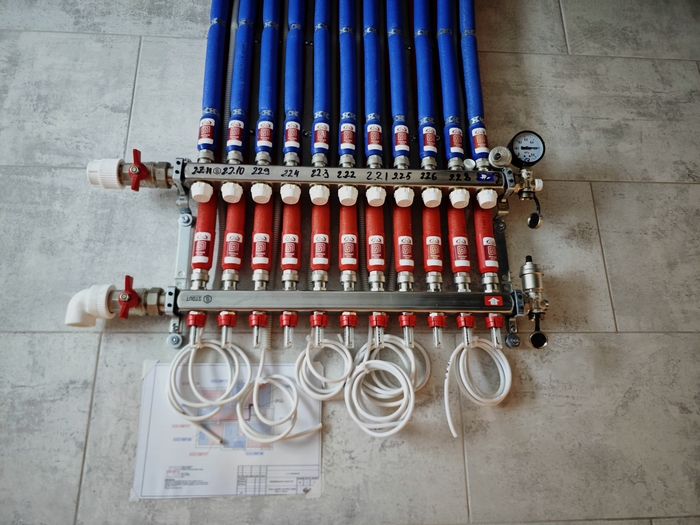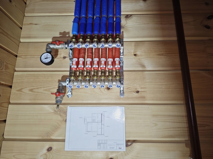 Выполнена разводка теплых полов, канализации и водоснабжения в двухэтажном доме площадью 202кв.м.