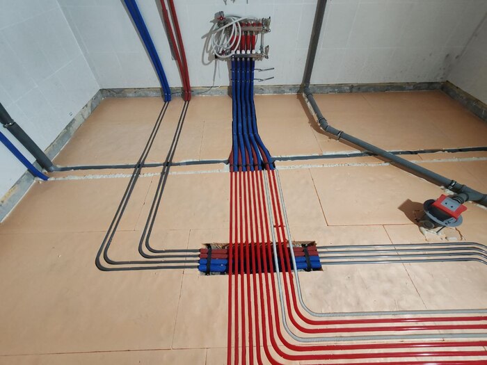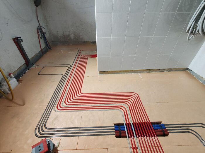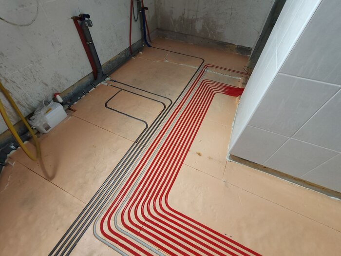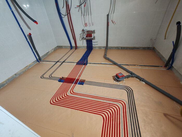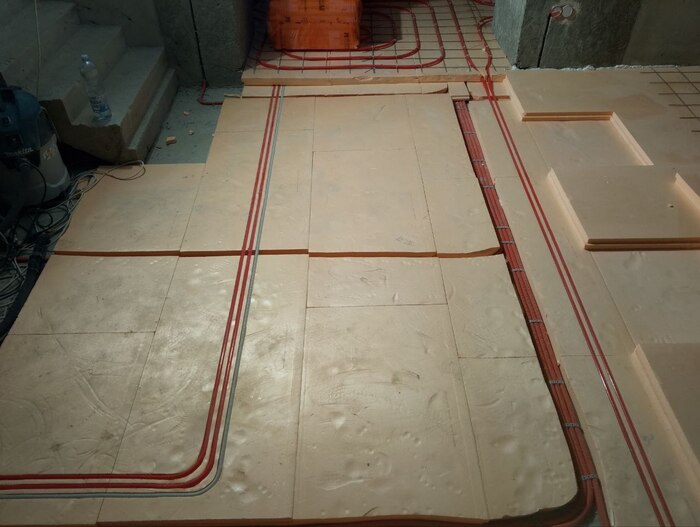 Затем монтажники Леши выполнили разводку электрики. . Теперь приступили к отоплению и водоснабжению.