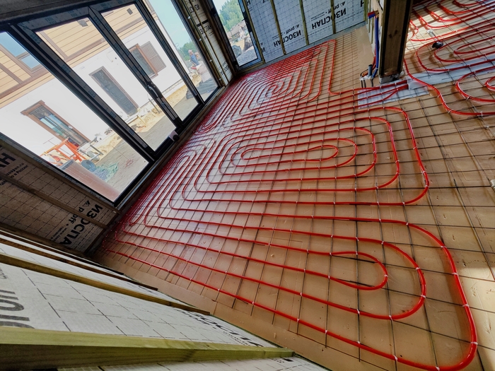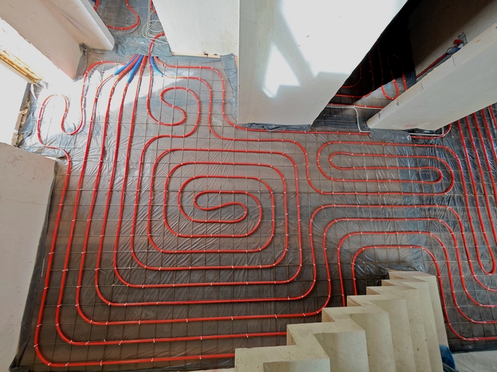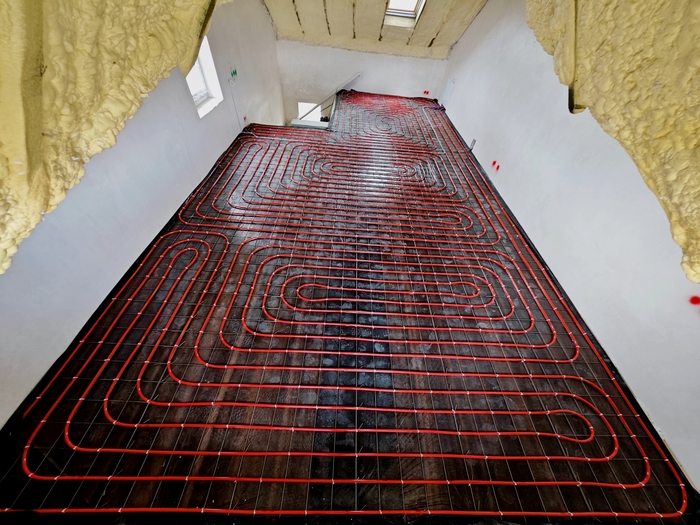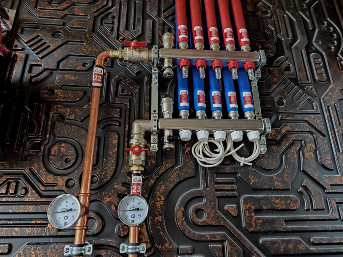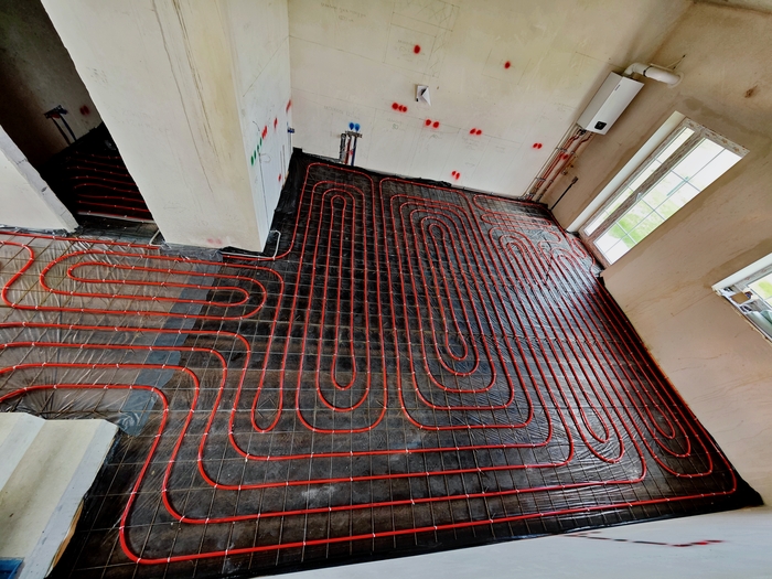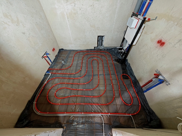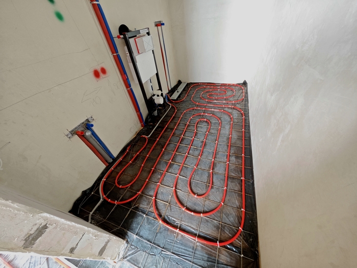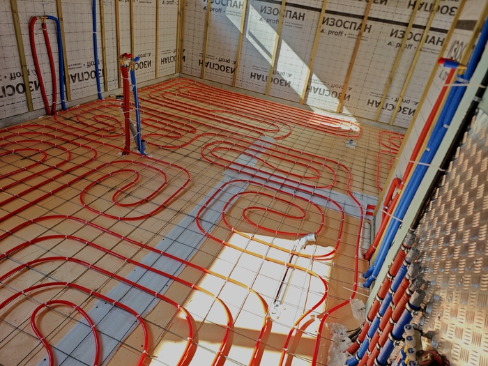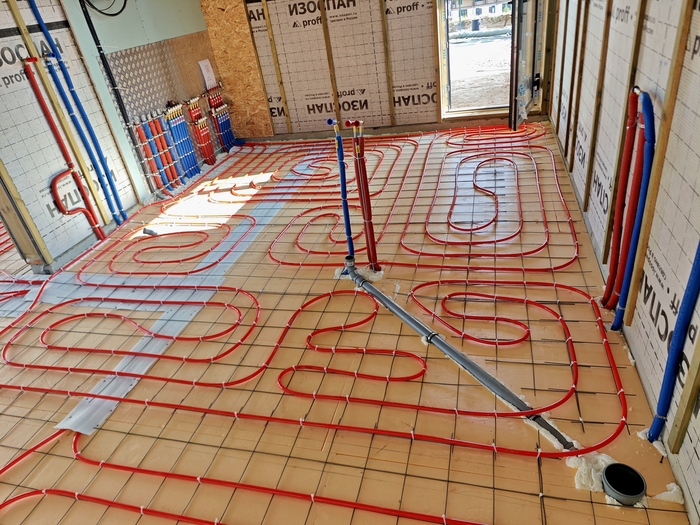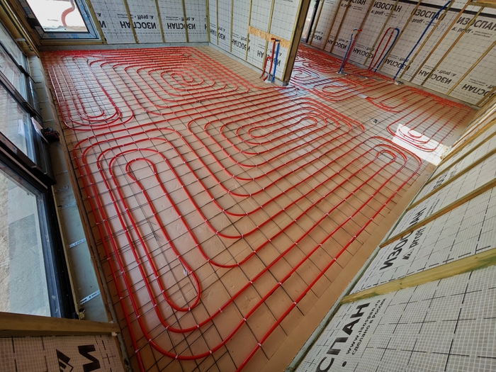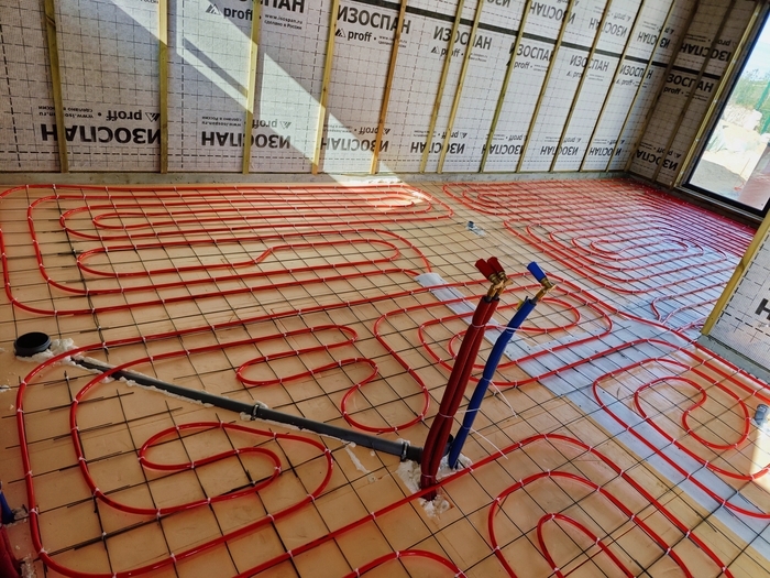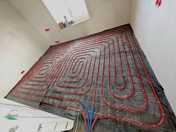 Выполнен монтаж теплых полов и водоснабжения с канализацией в бане площадью 50кв.м.