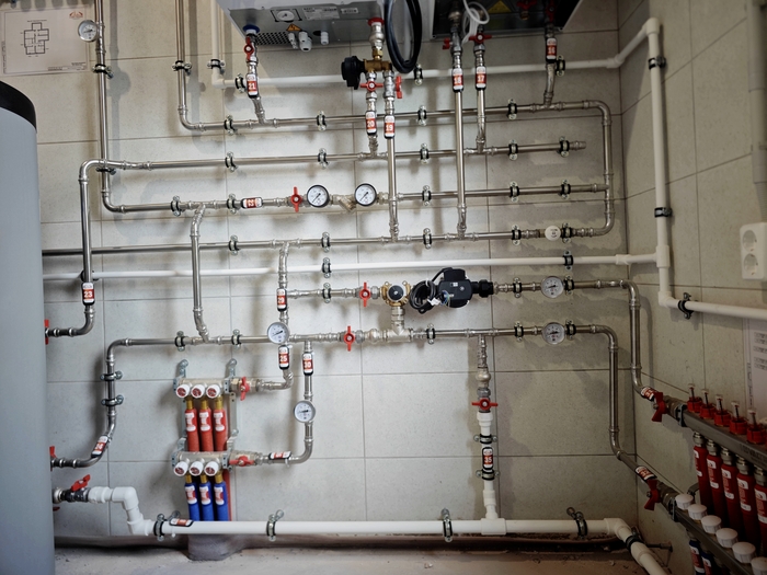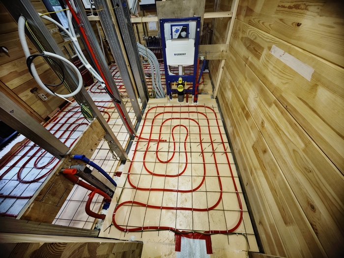 В одноэтажном строении площадью 140кв.м., сочетающим в себе баню и бассейн, выполнен монтаж внутренних систем: