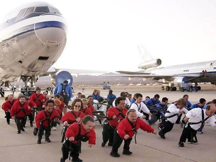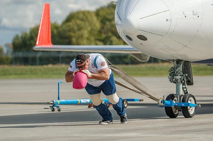 5. Сергей Агаджанян взял на буксир самолет и одновременно надувал до разрыва грелки. Ранее он тянул три вертолета, первым в мире сдвинул 14-тонный пожарный автомобиль и протащил многотонный вагон метро более, чем на 30 метров, установив мировой рекорд.