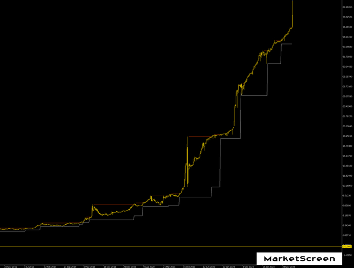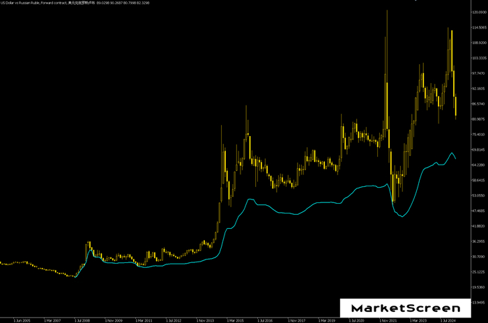 У меня там оказалось накинута на график кривая VWAP, которую, как многим известно, я использую в качестве поддержки. Именно на неё упали котировки на лоях 2011 год. На неё же рухнул доллар в 2022. Короче, сейчас она на 66,42.