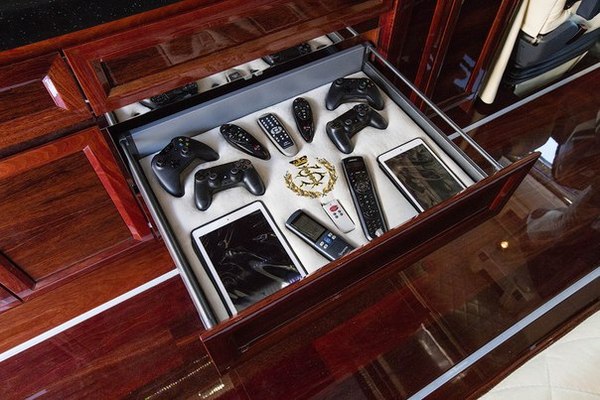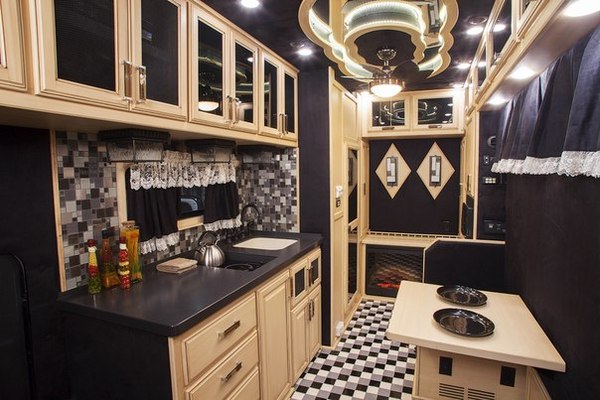 Для наблюдения за происходящим снаружи грузового автомобиля было установлено шесть камер видеонаблюдения, а в кузове расположился телевизор с жидкокристаллическим экраном, кухня отделанная красным деревом и настоящим мрамором, а также имеется барбекю, кожаные сидения и двухспальная кровать, которая имеет прошивку настоящими золотыми нитями.
